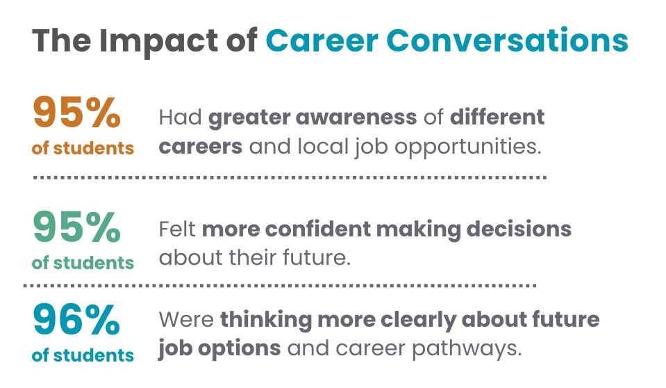 At the Ontario Career Lab, we’ve seen firsthand the difference a meaningful, authentic Career Conversation can make. When a volunteer Career Coach visits a classroom, they help students: